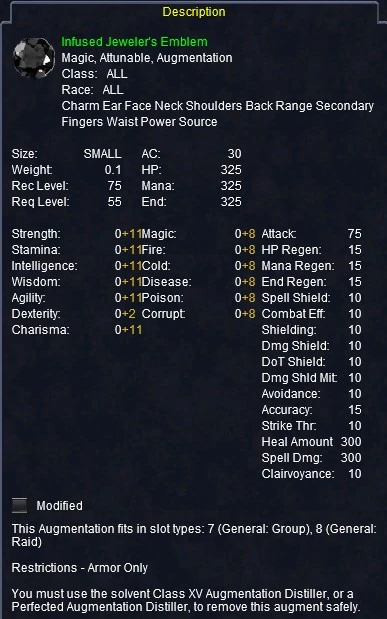 | All other slots except primary | Fragment of a Jeweler |